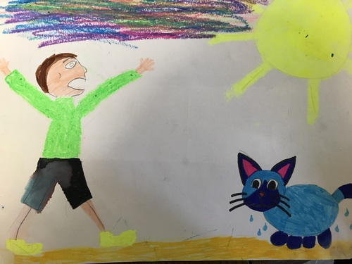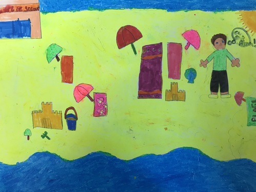 Dessins réalisés par une classe de CM2, école Françoise Giroud à Saint-Nazaire, représentant différentes scènes de la pièce Anatole et Alma.