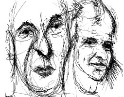 Un dessin à deux : lui par moi, moi par lui (le sien est beaucoup plus ressemblant...)